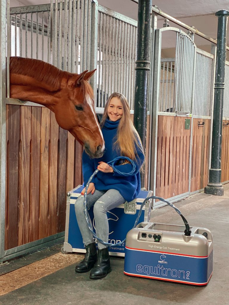 Mein Name ist Nadine Tilgner. Ich bin angehende Pferdephysiotherapeutin und bereits seit Februar 2021 selbständig mit der Anwendung von Equitron-pro.